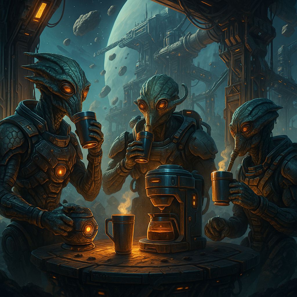 Among the drifting asteroid belts of the Outer Reaches, the Klyrath clans spend their days mining and salvaging rare galactic elements from orbit. To stay sharp during long shifts in zero-gravity rigs, they perfected an elite “Orbital Mix” — a meticulously crafted blend sourced from six stellar regions and celebrated for its bold, espresso-ready punch. This powerhouse brew is a badge of honor among Klyrath miners and a coveted favorite for anyone needing the focus and fire of a seasoned orbital salvager.