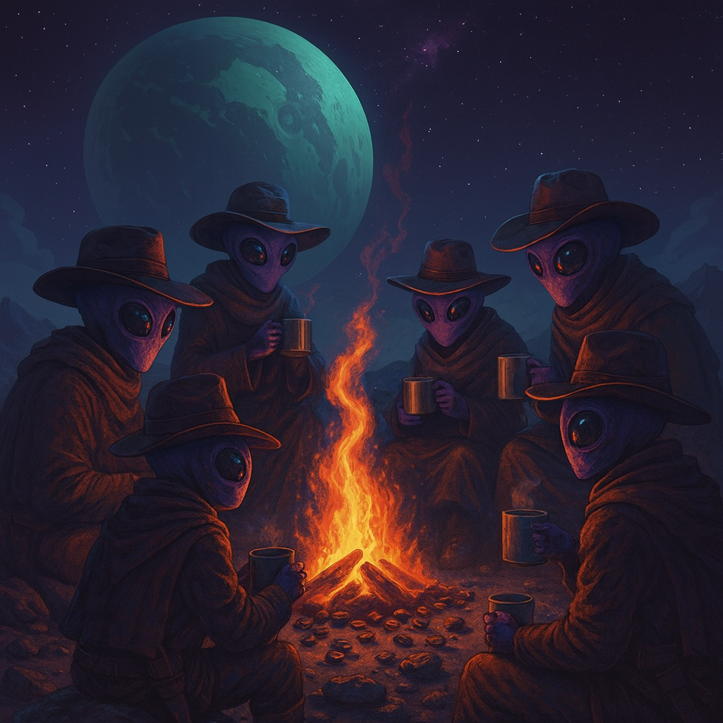 On the shimmering plains of planet Nelkvar, alien herders spend their days wrangling thunder-hoofed grazers across the planet’s barren plains. At night, they gather around plasma campfires and brew the legendary Frontier Blend — a perfected mix of rich cocoa, smooth caramel, and warm vanilla carried across generations. This rugged, comforting brew is said to keep even the toughest frontier wanderers sharp, steady, and ready for another day under Nelkvar’s twin suns.