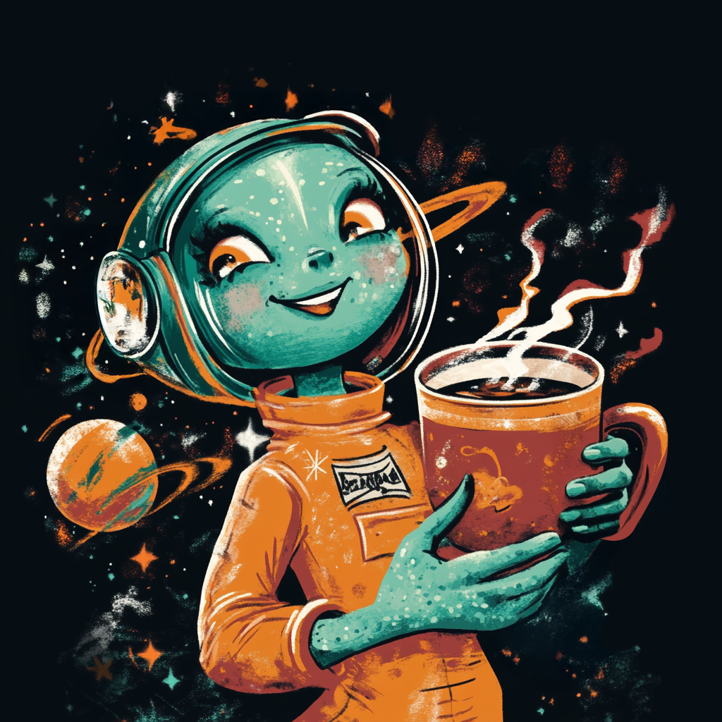 Retro-futuristic goodies from the same playful universe that powers our interstellar coffee.