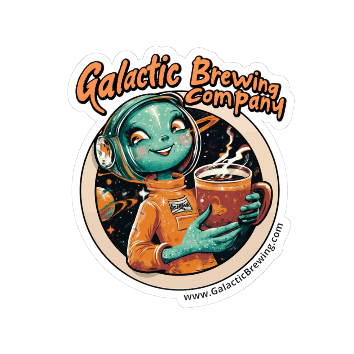 Shows the GBC Gigi Logo. Bright, eco-solvent inks make the oranges, teals, and warm cream tones pop, and the glossy finish adds a smooth shine that highlights the art. These stickers stick cleanly to laptops, journals, water-resistant gear (surface-dependent), and windows — they apply bubble-free and hold firmly with a strong permanent adhesive. Choose white or transparent backing and pick from four sizes to suit your setup. Great for collectors, indie coffee lovers, sci-fi fans, and anyone who wants a little cosmic charm on their everyday gear.