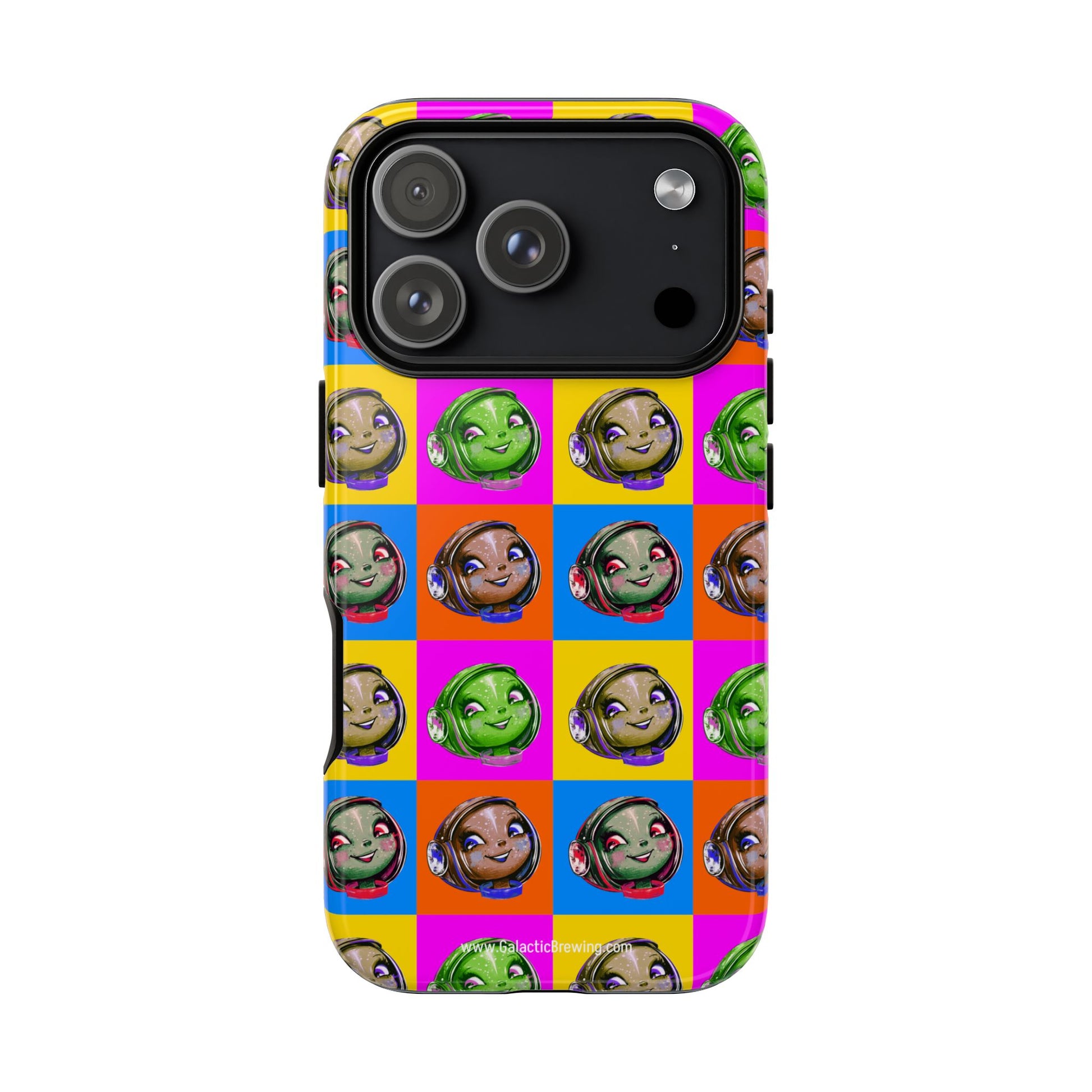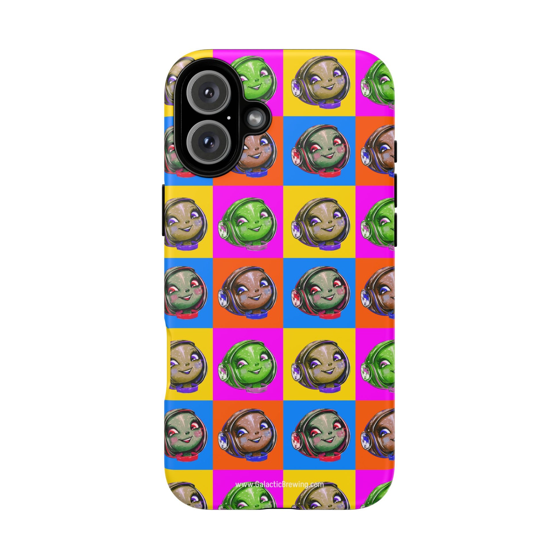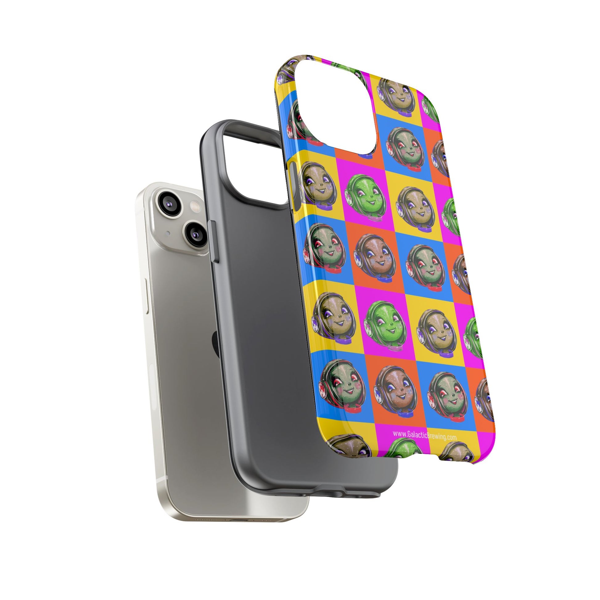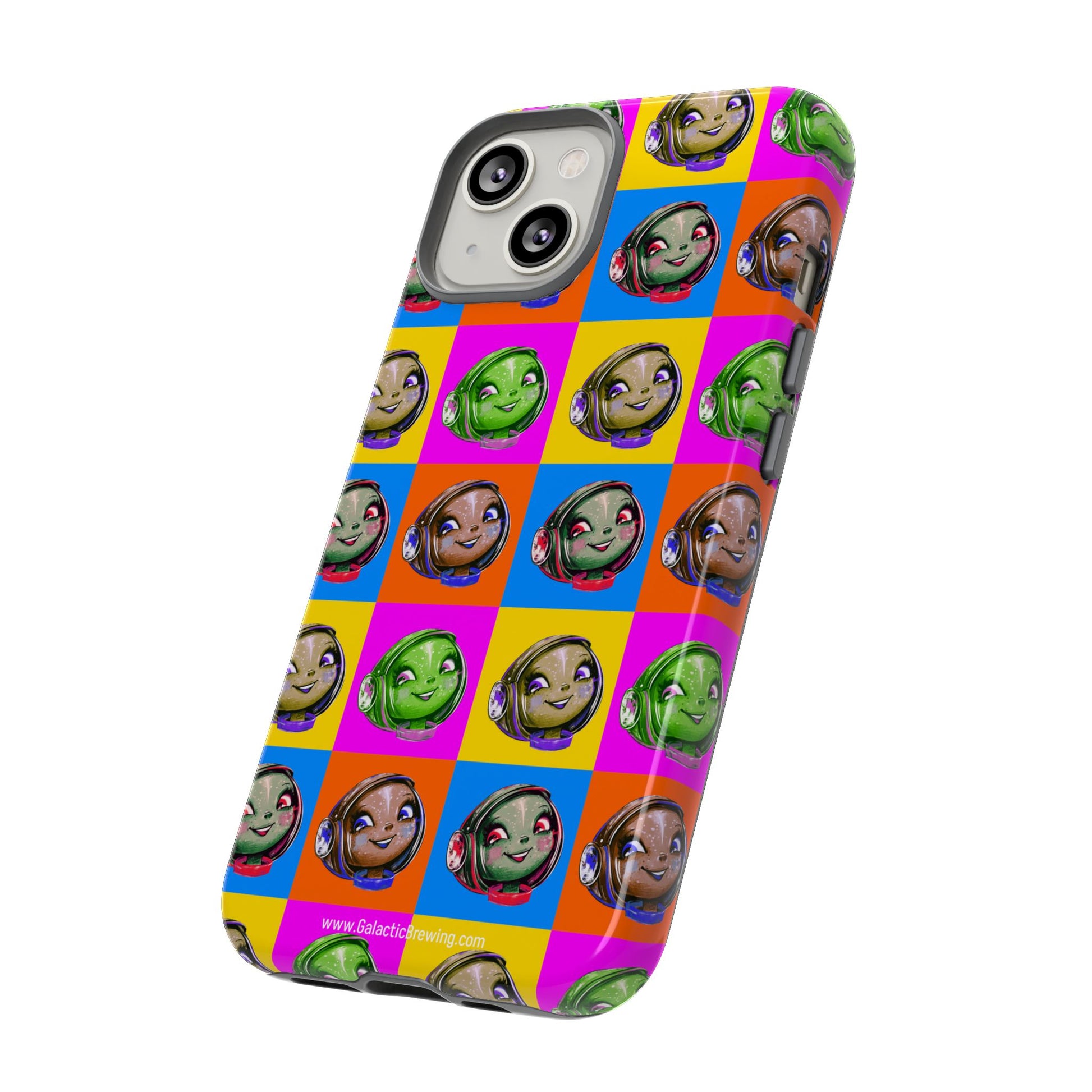 This slim, dual-layer tough case wraps your phone in retro space-age charm and dependable protection. The case features an image of Gigi in a Warhol-inspired pattern in full 3D wrap — vibrant color that resists outdoor fading thanks to UV protection. The glossy or matte finish sits over a hard polycarbonate shell and a soft TPU silicone liner that cushions drops while keeping ports accessible and wireless charging functional. It wears like a conversation starter for coffee lovers who dream of rocket-launch mornings and mid-century futurism.