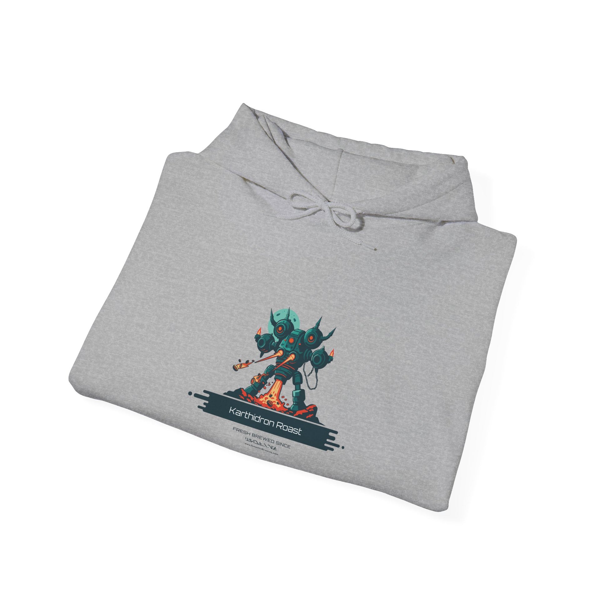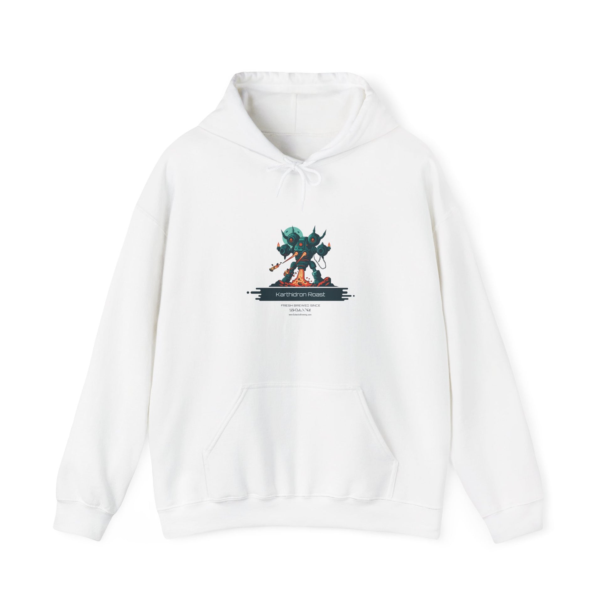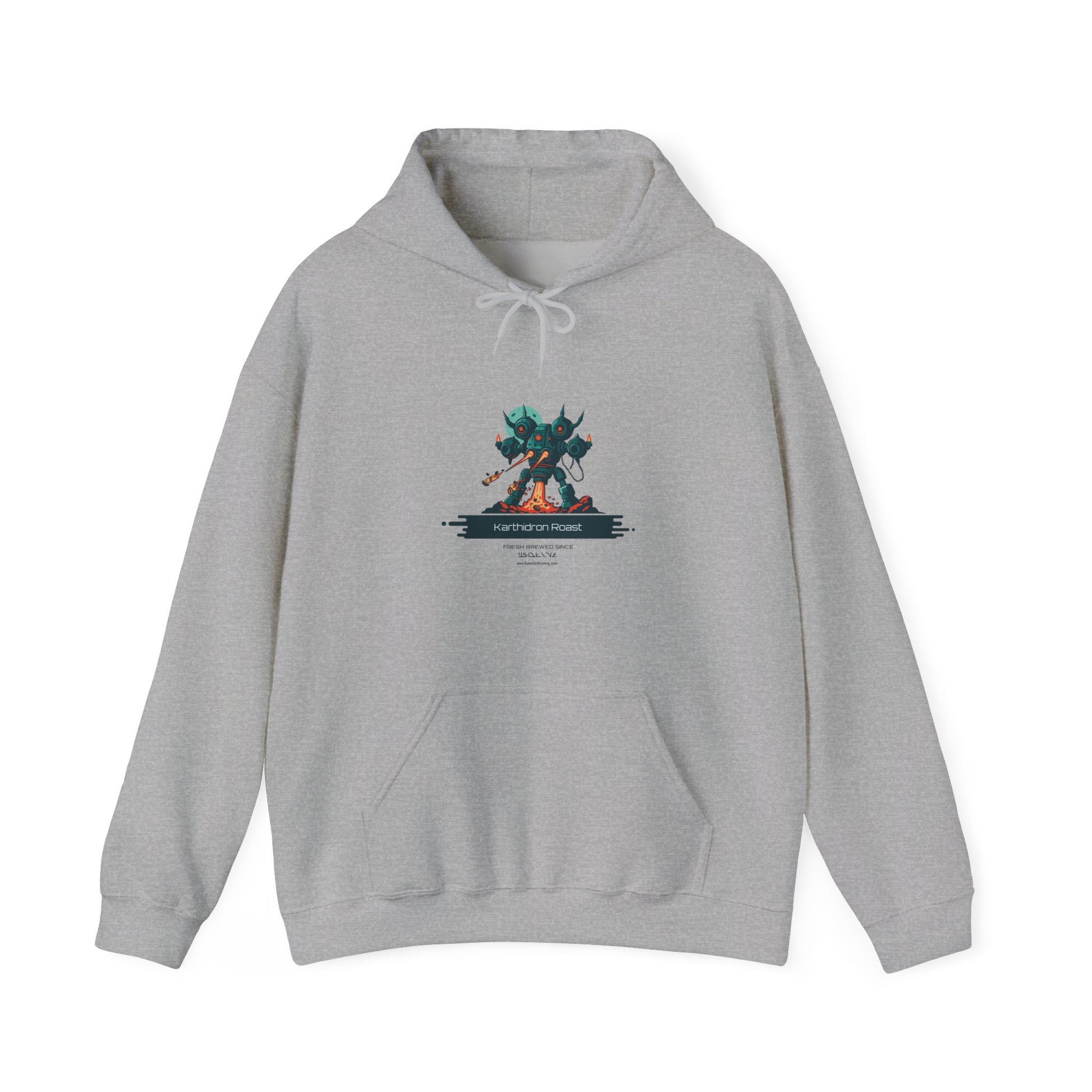 Soft, roomy, and alive with character — this hooded sweatshirt carries a playful, slightly mischievous fantasy illustration that feels like a page ripped from a favorite graphic novel. The front shows a bold, armored creature poised at attention, while the back features a more intimate, portrait-style scene that invites a second look. Wear it on cool mornings, at late-night game sessions, or wandering city streets when you want comfort without losing personality. The double-lined hood and color-matched drawcord add a tailored touch, and the kangaroo pocket keeps hands warm between quests. Thoughtful details like tear-away neck labels and durable fabric mean the art stays vivid wash after wash.