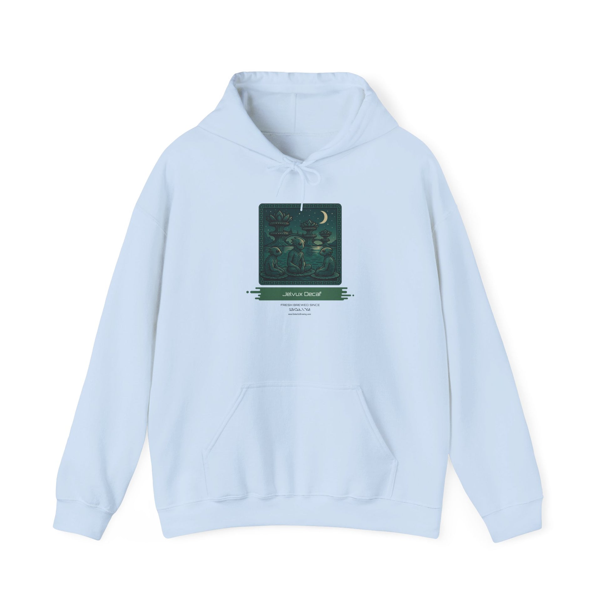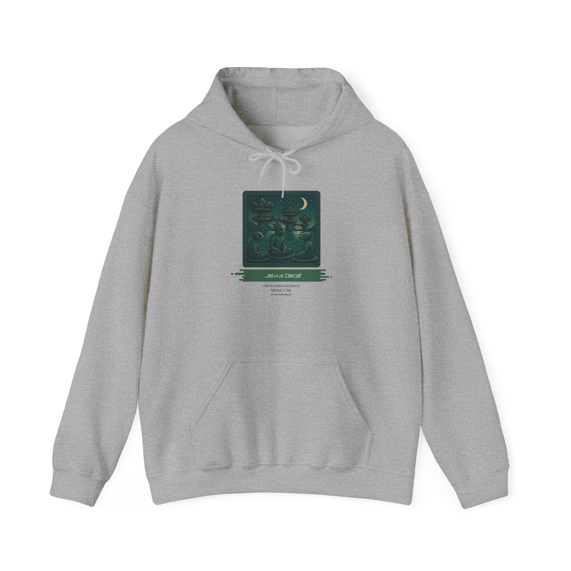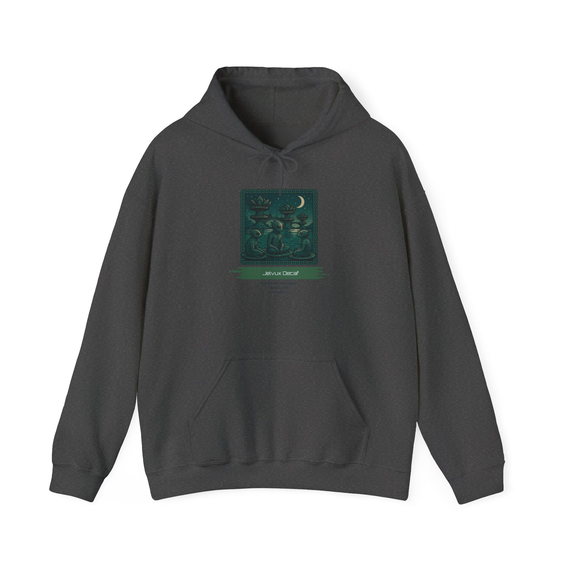 This hoodie features the image of our Jelvux Decaf. Wear it on cool mornings, at late-night game sessions, or wandering city streets when you want comfort without losing personality. The double-lined hood and color-matched drawcord add a tailored touch, and the kangaroo pocket keeps hands warm between quests. Thoughtful details like tear-away neck labels and durable fabric mean the art stays vivid wash after wash.
