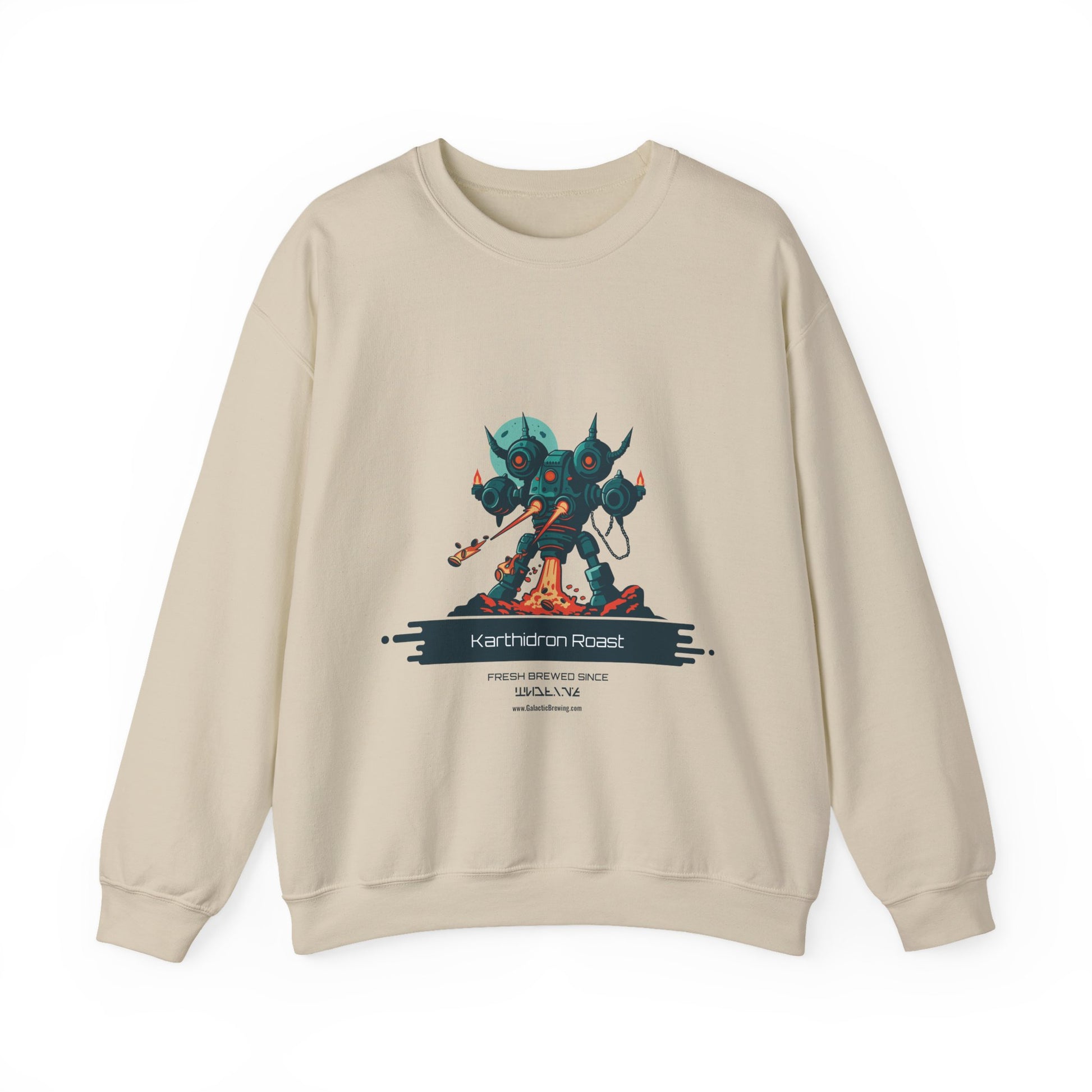 The sweatshirt features the Karthidron Roast image. It feels lived‑in from the first wear: medium‑heavy weight that warms without weighing you down, with a clean crew neckline and classic fit that layers easily under a jacket or over a tee. The design sits front and center, giving quietly nerdy energy that reads as both artful and approachable. Wear it to game nights, casual meetups, conventions, or those slow weekend mornings when you want comfort with personality.