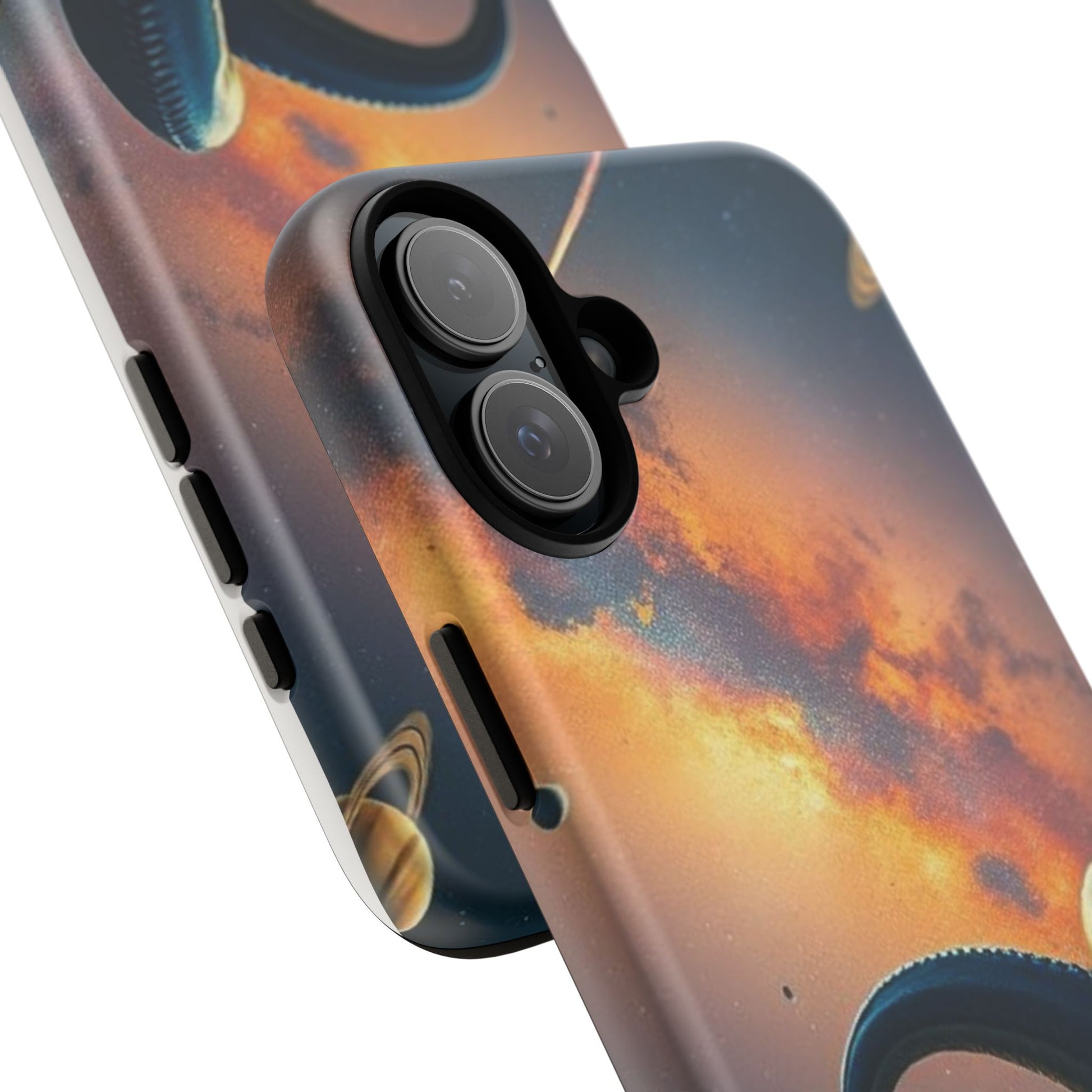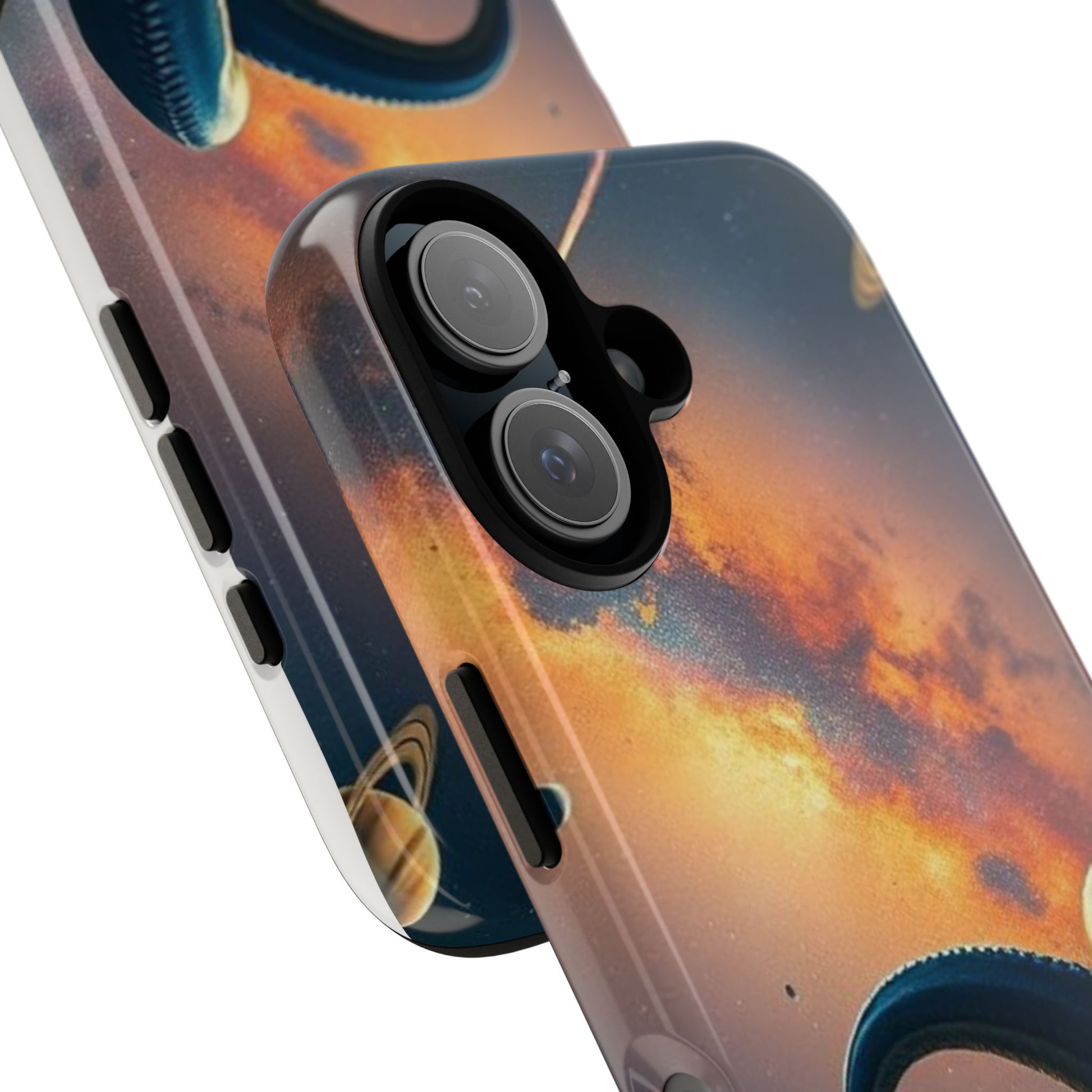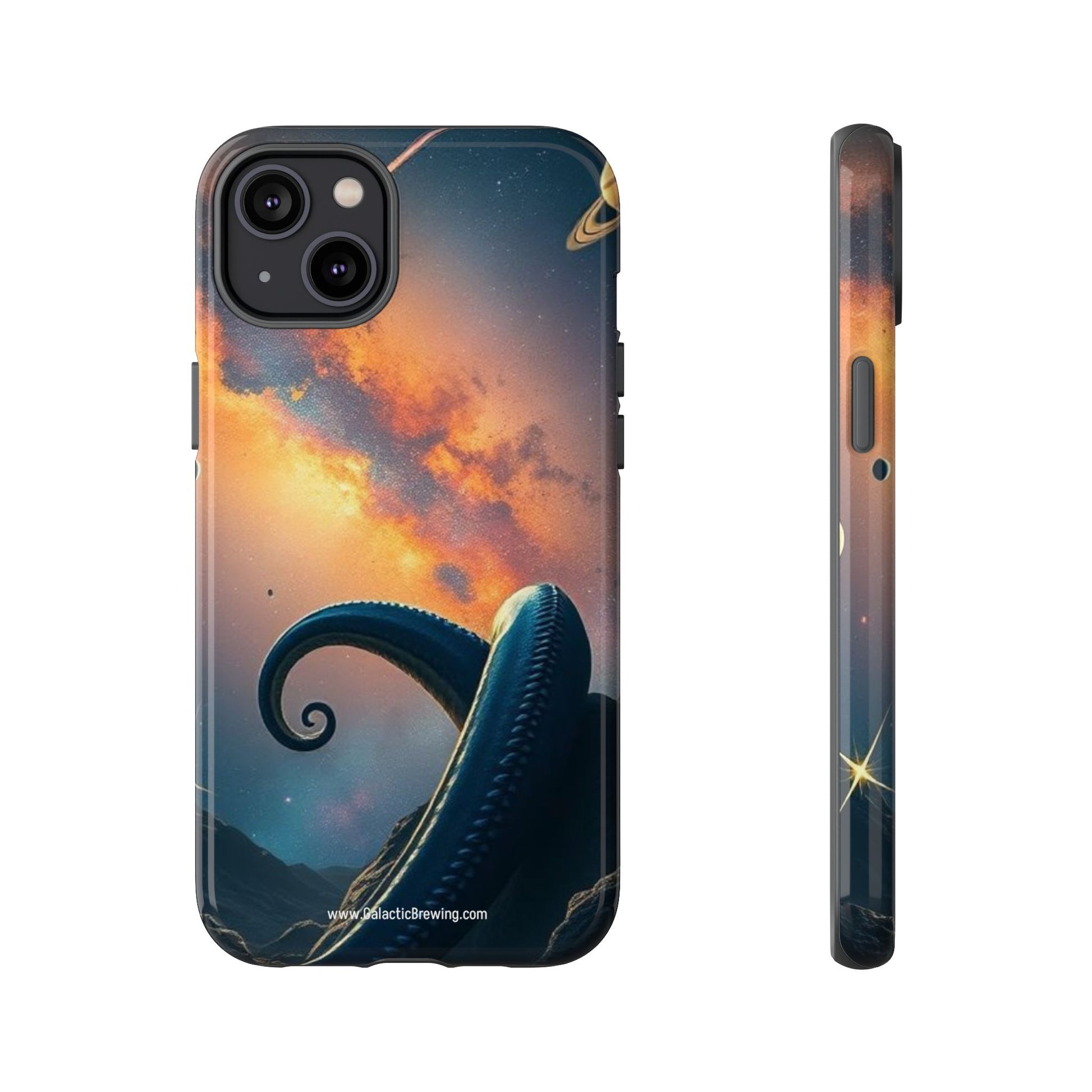 This slim, dual-layer tough case wraps your phone in retro space-age charm and dependable protection. The case features an image of our Tenticlian Light Roast in full 3D wrap — vibrant color that resists outdoor fading thanks to UV protection. The glossy or matte finish sits over a hard polycarbonate shell and a soft TPU silicone liner that cushions drops while keeping ports accessible and wireless charging functional. It wears like a conversation starter for coffee lovers who dream of rocket-launch mornings and mid-century futurism.