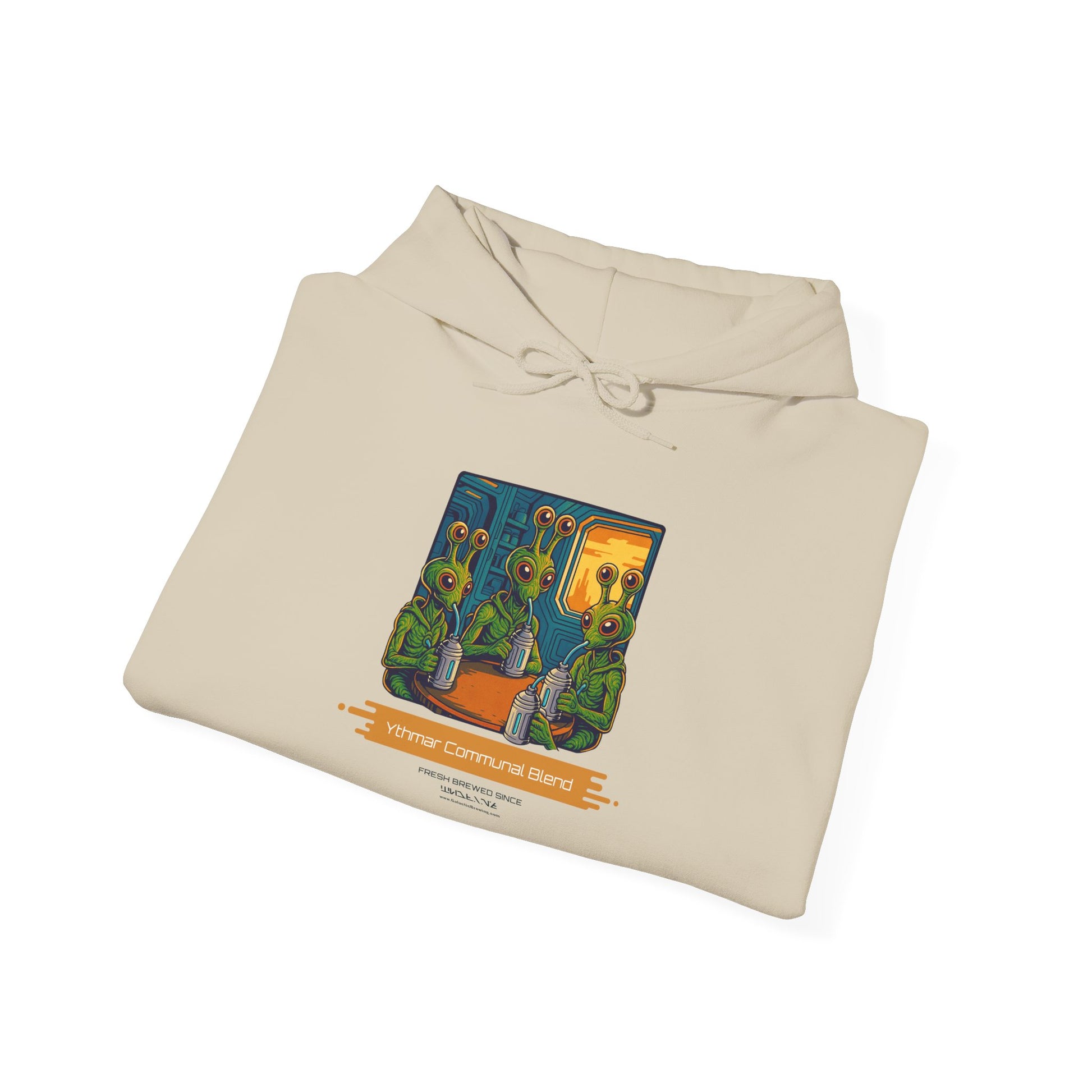 This hoodie Features the image of our Ythmar Communal Blend. Wear it on cool mornings, at late-night game sessions, or wandering city streets when you want comfort without losing personality. The double-lined hood and color-matched drawcord add a tailored touch, and the kangaroo pocket keeps hands warm between quests. Thoughtful details like tear-away neck labels and durable fabric mean the art stays vivid wash after wash.